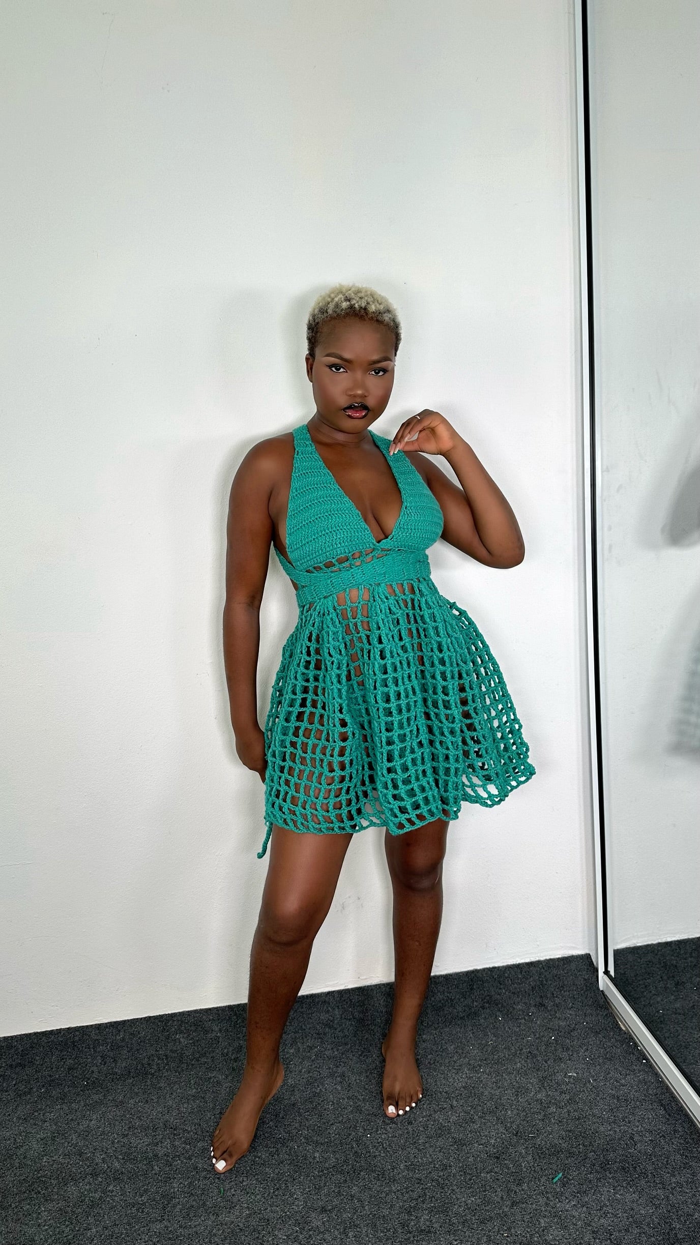 Indulge in the allure of our exquisite Handmade Crochet Mesh Short Dress, a true embodiment of luxury and style that every beautiful woman desires. This stunning piece is not just a dress; it’s a statement of sophistication and confidence, designed to elevate your wardrobe to new heights.