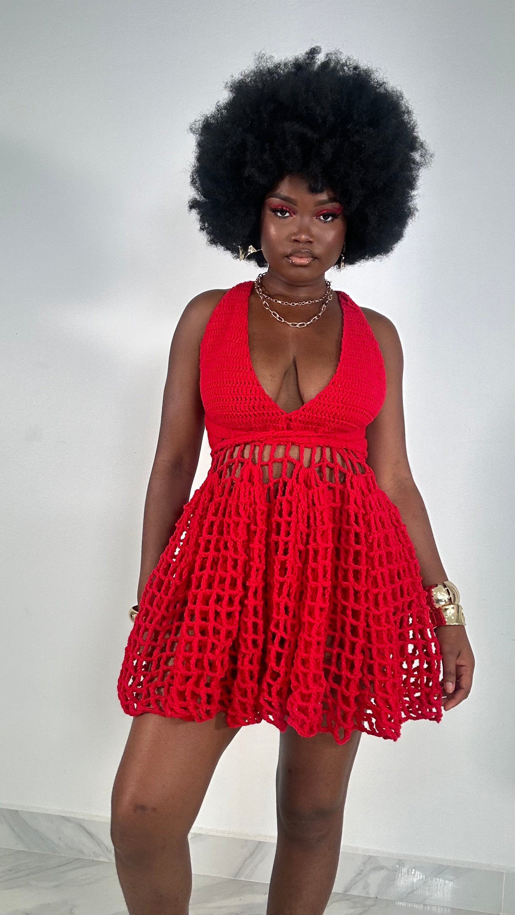 Every beautiful woman deserves to feel extraordinary. Treat yourself or surprise someone special with the gift of luxury that is our Handmade Crochet Mesh Short Dress. Experience the perfect blend of style, comfort, and sophistication—before it’s gone!