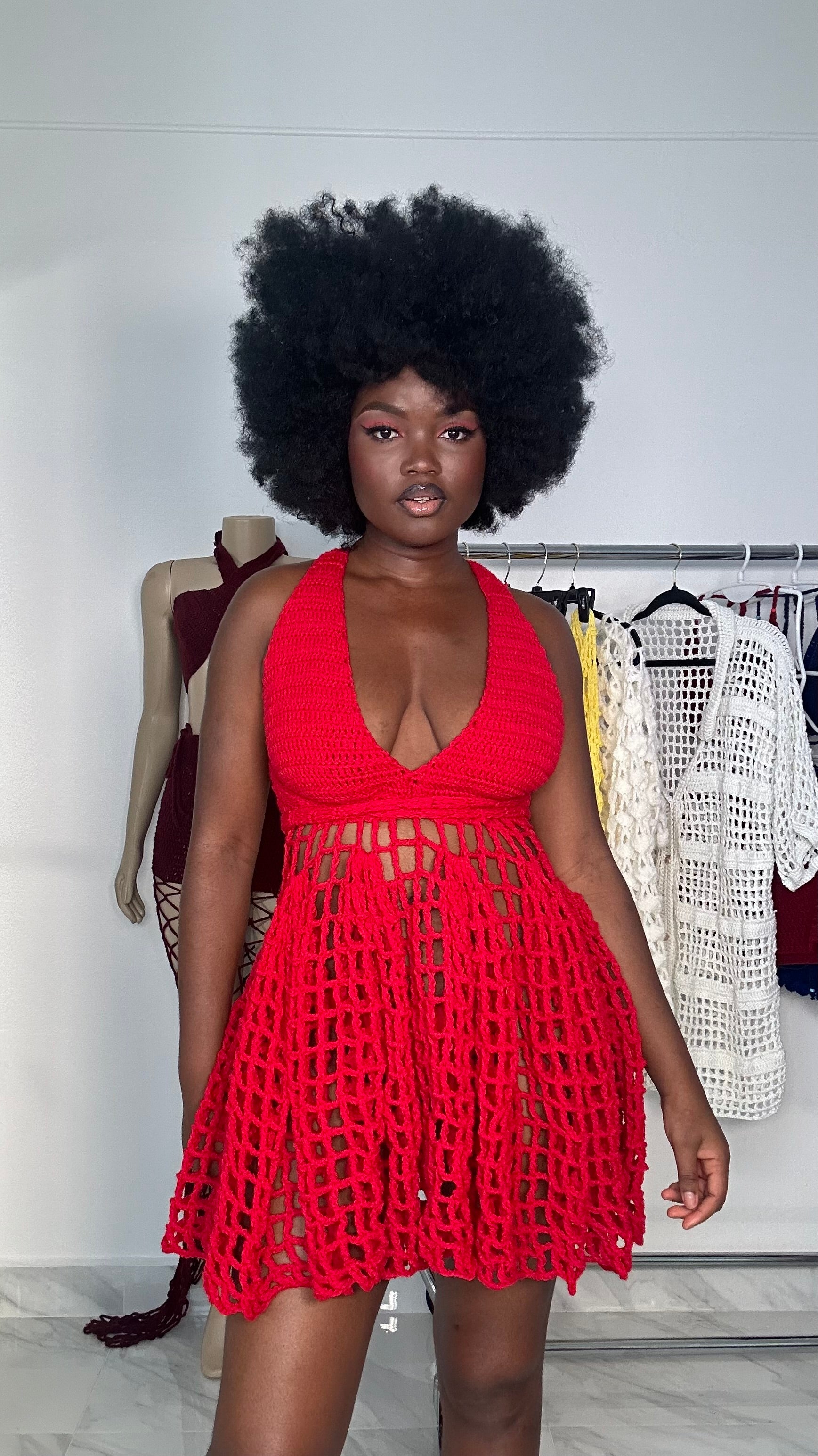 Each dress is meticulously crafted by skilled artisans, with every stitch made to perfection. The intricate crochet design showcases a blend of artistry and elegance, ensuring that you stand out in any setting. The attention to detail is evident in the beautiful patterns and textures that flow gracefully over your body.
